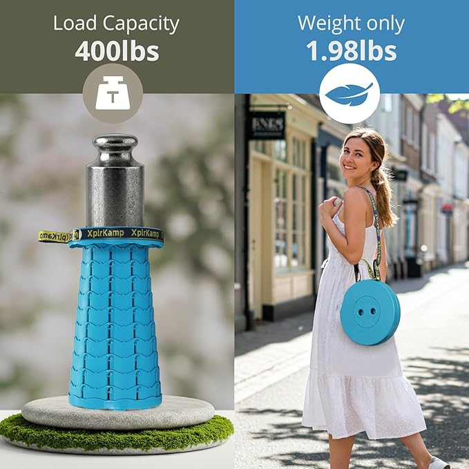 • Foldable & Portable: The XplrKamp foldable stool weighs only 1.98 lbs (0.9kg) with a collapsible size of 2.56"×9.84" (6.5×25cm).Features a 22-inch adjustable strap for shoulder carry or backpack attachment. Ideal as a camping stool for hiking, fishing,outdoor painting and picnics, while fitting seamlessly in cars, closets, or small spaces