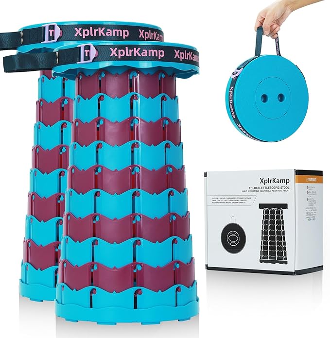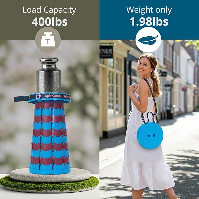 • Foldable & Portable: The XplrKamp foldable stool weighs only 1.98 lbs (0.9kg) with a collapsible size of 2.56"×9.84" (6.5×25cm).Features a 22-inch adjustable strap for shoulder carry or backpack attachment. Ideal as a camping stool for hiking, fishing,outdoor painting and picnics, while fitting seamlessly in cars, closets, or small spaces
