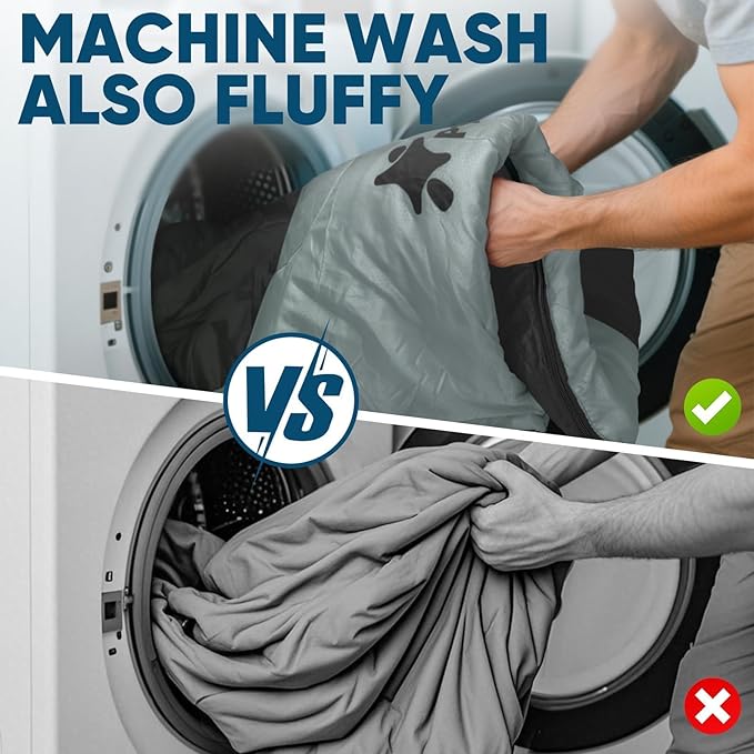 • Machine Washable: Crafted with double S-shaped stitching and Hollowfiber cotton filling, this sleeping bag is both water-resistant and windproof; The spun cotton inner lining ensures softness and warmth, maintaining its thermal efficiency even after machine washing without clumping