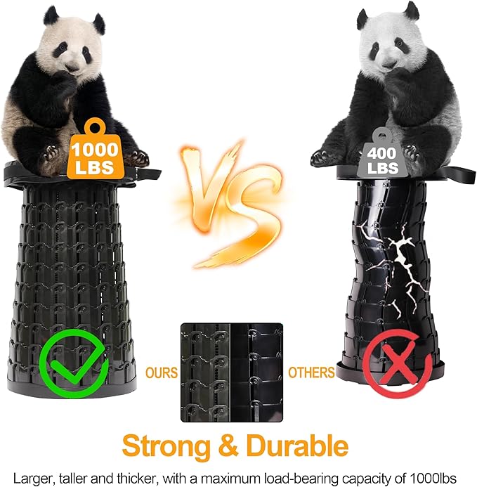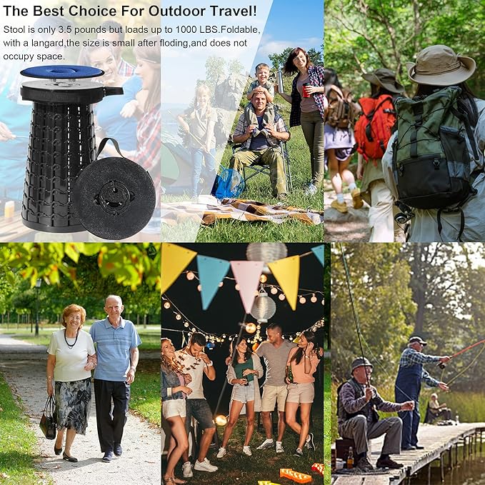 • 【More Stable and Durable,Maximum Load Capacity: 1000 lbs】Poor quality recycled materials may produce similar looking products, but the load-bearing capacity is no joke. This portable collapsible stool relies on patented structural design and special high-performance new materials. It weighs only 3.5 lbs, but can bear 1,000 lbs, the highest load-bearing capacity across the whole network, bringing safety and stability while maintaining the lightness of the telescopic folding stool.