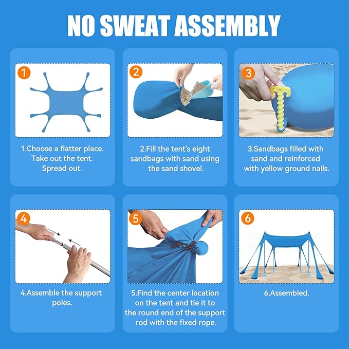 • Easy Setup: The beach tents are designed for quick and hassle-free setup, perfect beach tent sun shelter for families, solo adventurers, or group outings