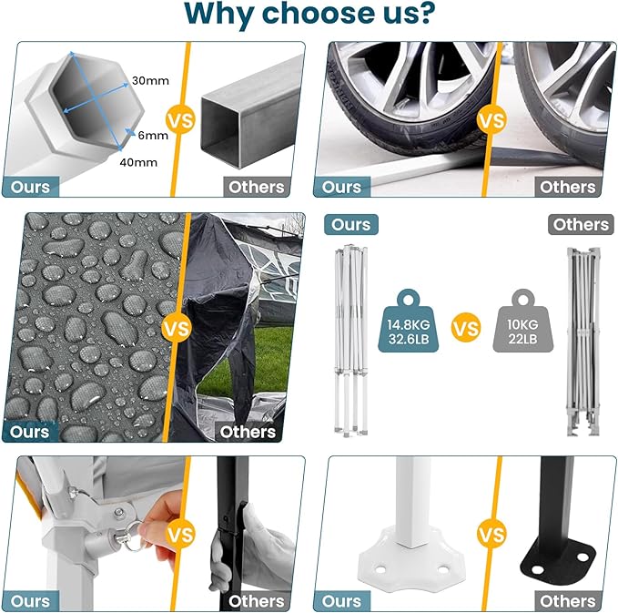• 🏆【Upgraded Hexagonal Tube】Reinforced 40x30x0.6mm hexagonal steel tubes and enlarged anti-wind feet provide more support and stability than standard square tubes, the quality of long-termism,perfect for the beach, backyard barbecues or camping.