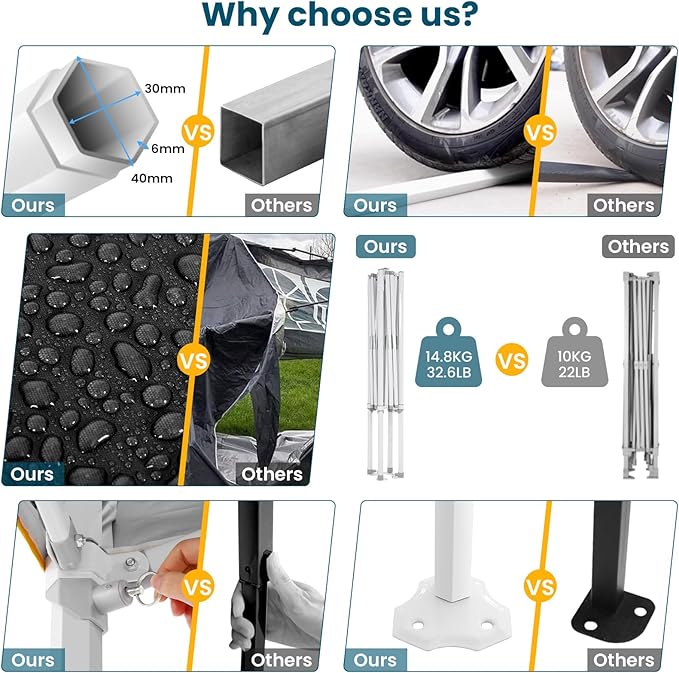 • 🏆【Upgraded Hexagonal Tube】Reinforced 40x30x0.6mm hexagonal steel tubes and enlarged anti-wind feet provide more support and stability than standard square tubes, the quality of long-termism,perfect for the beach, backyard barbecues or camping.