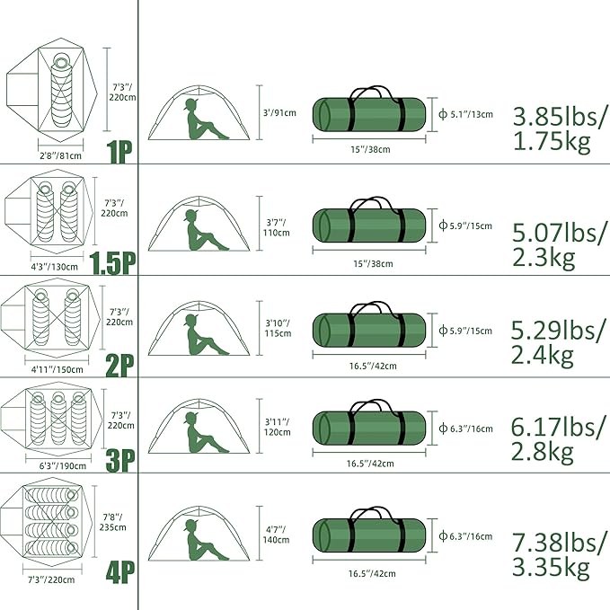 • QUICK SETUP & COMPACT: Freestanding and two Aluminum poles designed for lightweight hiking tent's fast pitching. Easily set up by one person with no experience. This ultralight backpacking tent is compact and portable, and also great for Hiking, Bikepacking, Kayaking, Mountaineering, Fishing, or Car Camping