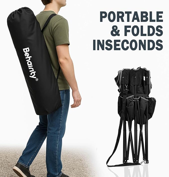 • Heavy-Duty Steel Frame Supports Up to 400 lbs: Built with a reinforced steel frame and weather-resistant 600D Oxford fabric, this heavy duty camping chairs is designed to hold up to 400 lbs, making it stable, strong, and built to last through every tailgate, fishing trip, or backyard BBQ.