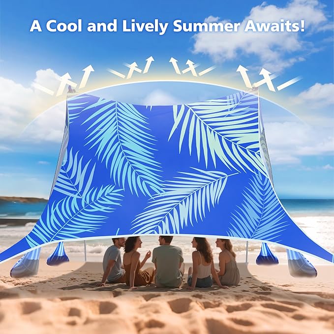 • Versatile Multi-Terrain Use - Adjust stability poles and sand anchors to angle shade for optimal sun blocking. Use on sand, grass, rocky campsites, gardens, lawns, or vehicles—ideal for summer camps, picnics, group activities, or outdoor events.