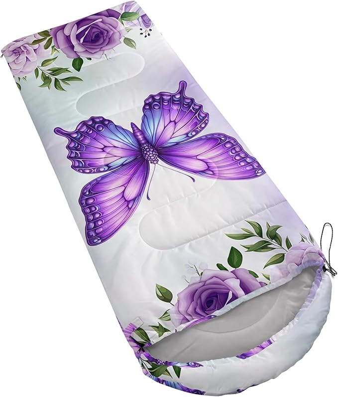 • 【Fashion Design】This camping sleeping bag is designed with butterfly and floral pattern.This sleeping bag for girls is lightweight and easy to carry.As backpacking essentials for hiking and camping outdoor,this sleeping bag is a great choice.