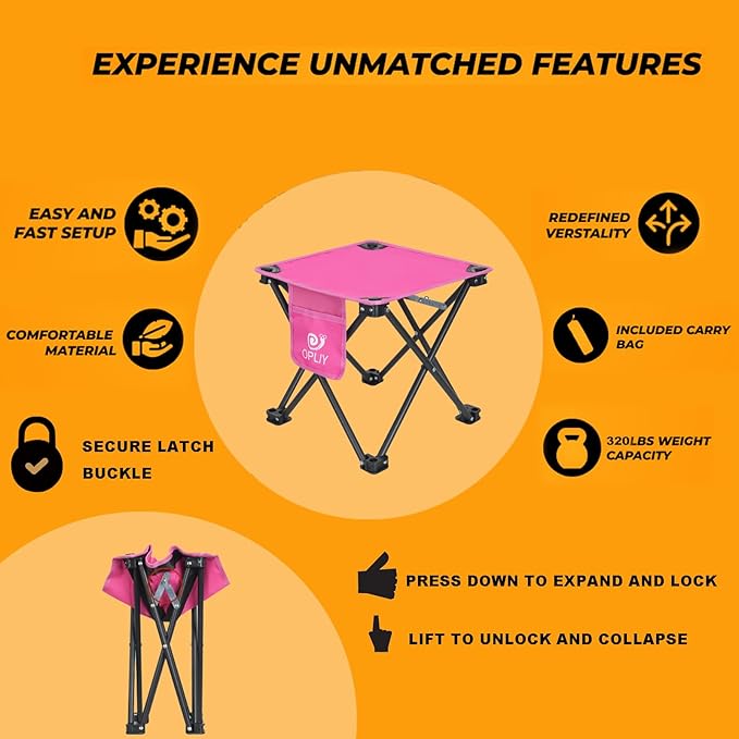 Opliy Camping Stool Upgrade Foot Stool for Camping Fishing Hiking Gardening and Beach, Camping Seat with Carry Bag (Rose Red)