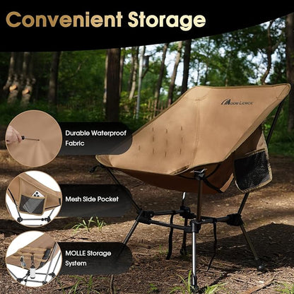 MOON LENCE Portable Camping Chair Plus, Upgraded Comfort & Size, Compact and Lightweight Still, Folding Chair for Backpacking & Hiking, 330Lbs Capacity (Khaki)