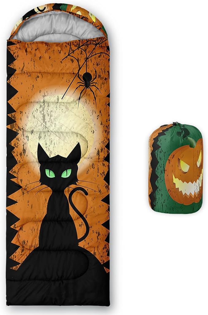 • SUITABLE:The sleeping bag can be used for 3 Seasons.SIZE:90.5"L x 31.5"W Suggenal extreme temperature: 41 ℉ -77 ℉.Applicable in a variety of scenarios,such as Travel camping pajamas party,It's very suitable for you to travel with your children.Half-circle hood with adjustable drawstring,which can keep you warm and prevent your humidity