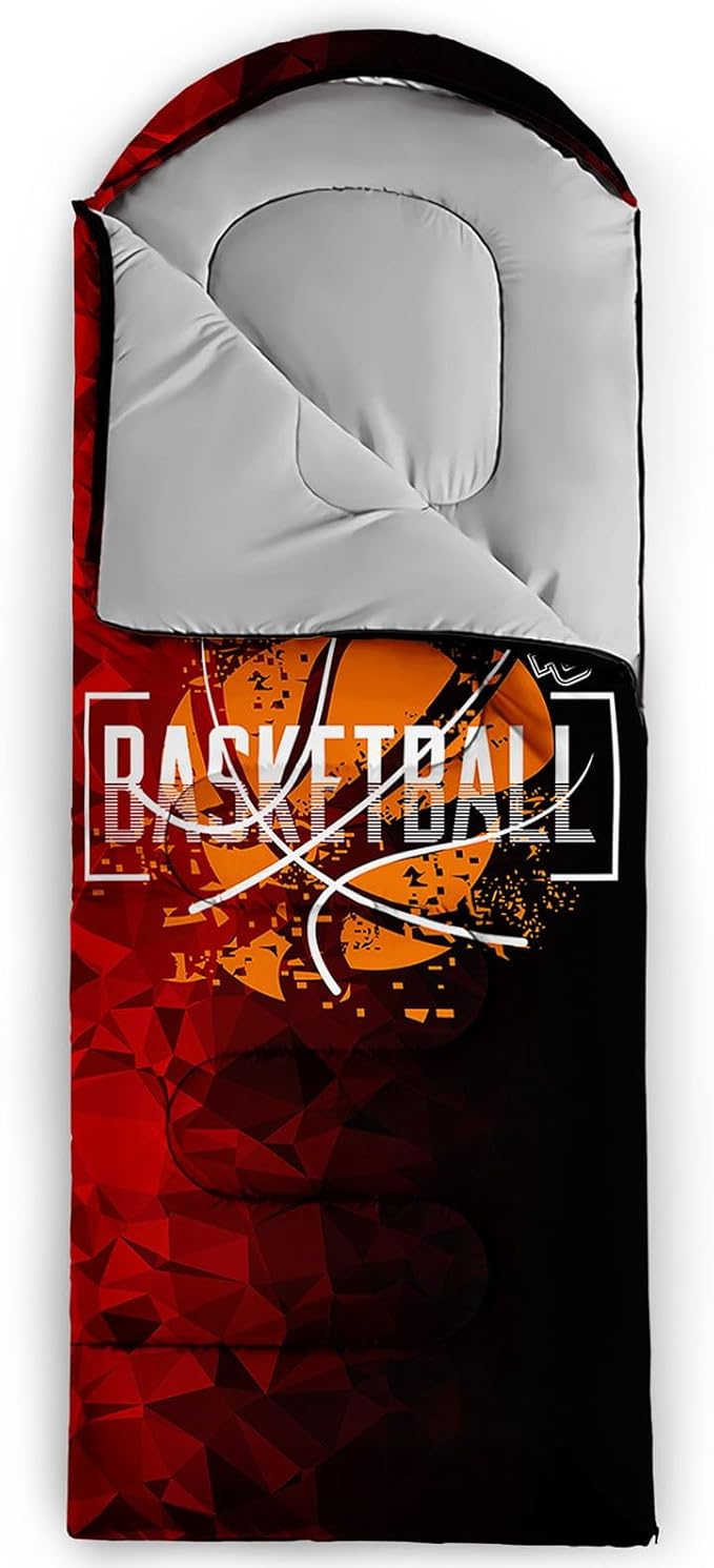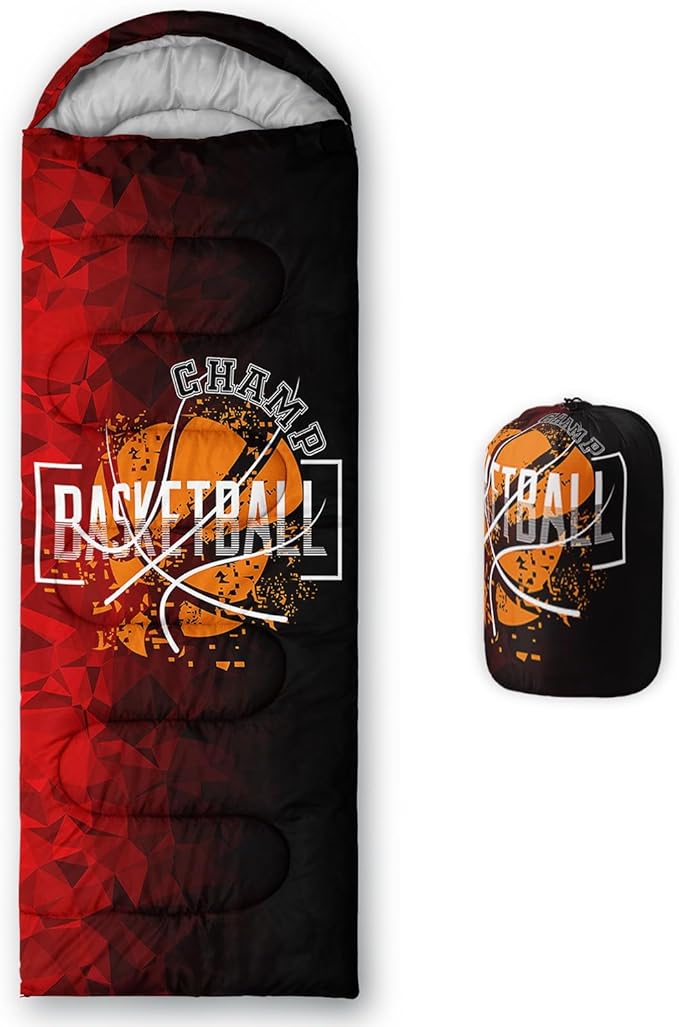 • SUITABLE:The sleeping bag can be used for 3 Seasons.SIZE:90.5"L x 31.5"W Suggenal extreme temperature: 41 ℉ -77 ℉.Applicable in a variety of scenarios,such as Travel camping pajamas party,It's very suitable for you to travel with your children.Half-circle hood with adjustable drawstring,which can keep you warm and prevent your humidity