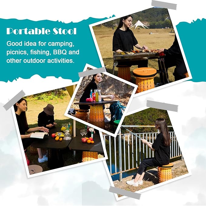 • Foldable Stool: The sitting stool has a telescopic design that allows you to stretch or collapse it like an accordion.