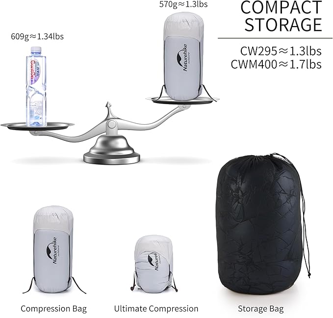 • PROFESSIONAL ENTRY SLEEPING BAG - The CW295/ CWM400 series continues to be recognized by customers as Naturehike's hottest professional entry level down sleeping bags. Whether you are a beginner or a professional outdoor enthusiast, this Naturehike Sleeping Bag will be the right outdoor companion for you. If you have any questions please feel free to contact us, we will be happy to help you solve the problem