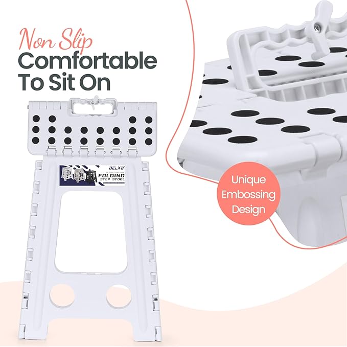 • Excellent Customer Service: At Delxo, we're dedicated to creating step stools that cater to everyone’s needs. any help need, feel free to contact us at any time.Note: Keep the plastic folding stool away from open flames and avoid prolonged exposure to direct sunlight to extend its lifespan