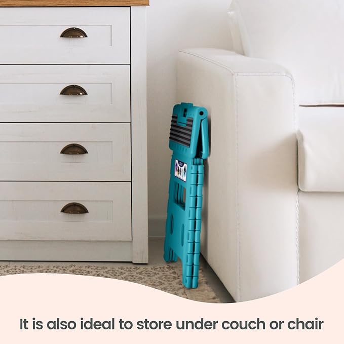 • Space Saving Foldable Stool: Delxo 13 inch step stool save your closet space more than 90% when it folded up. It's quickly and easily folds away for convenient storage so that you can open with one flip of the hand. Also you can hides them in corner at home because it's so compact