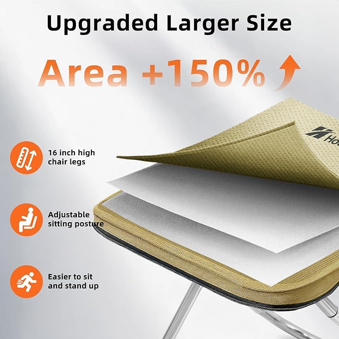 • 𝐔𝐩𝐠𝐫𝐚𝐝𝐞𝐝 𝐒𝐢𝐳𝐞, 𝐌𝐨𝐫𝐞 𝐂𝐨𝐦𝐟𝐨𝐫𝐭𝐚𝐛𝐥𝐞: The seat area of the portable stool is upgraded to 16.5×14.6 in, which can better support the body and reduce the feeling of pressure, make people easily adjust and find a comfortable sitting position. The hight of the stool is up to 16 in, ideal for adults, not tired of sitting for a long time.