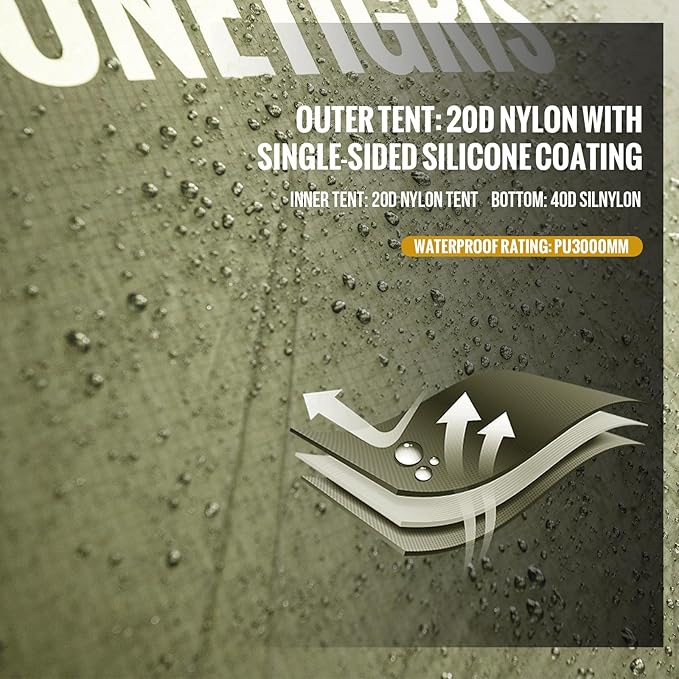 • Lightweight and Durable: The OneTigris STELLA Camping Tent features a lightweight and durable 20D Nylon outer fabric with a single-layer silicone coating, making it both sturdy and easy to carry at only 4.8lb/2.2kg. Suitable for backpackers, bushcrafters, everyday campers, and families Waterproof: With a 3000mm waterproof rating, the STELLA camping tent is perfect for use in all weather conditions. The removable blackout outer tent allows for greater flexibility in use.