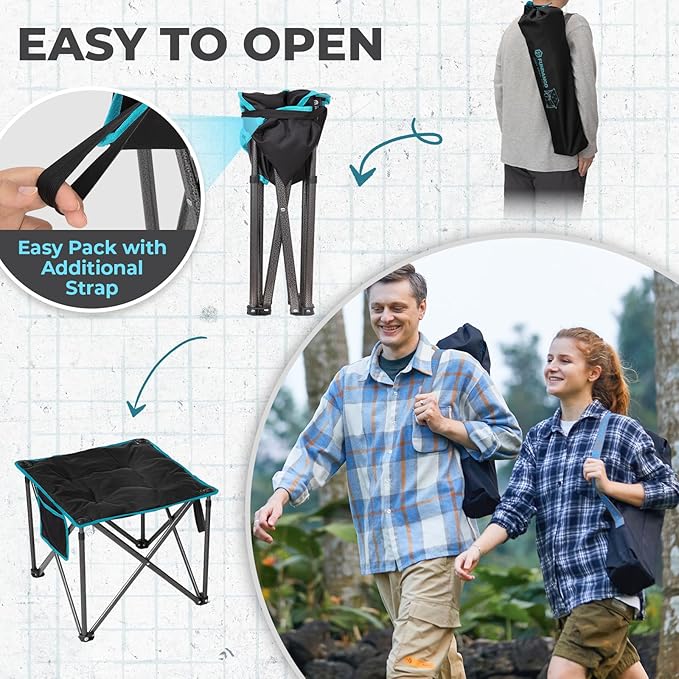 • Compact & Foldable for Easy Storage: This camping stool features a convenient folding design, making it incredibly easy to store and carry. Whether you're heading to the campsite, park, or beach, simply fold it up and pack it in the included carry bag for hassle-free transportation.