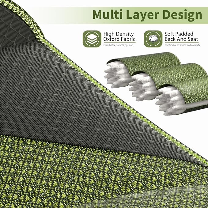 • 【Sports Chairs – Ergonomic Padded Design】Upgraded X-brace steel frame eliminates wobbling tested 10,000+ folds. adjustable Padded armrests + lumbar support keep you comfy during games, concerts, or hiking trips