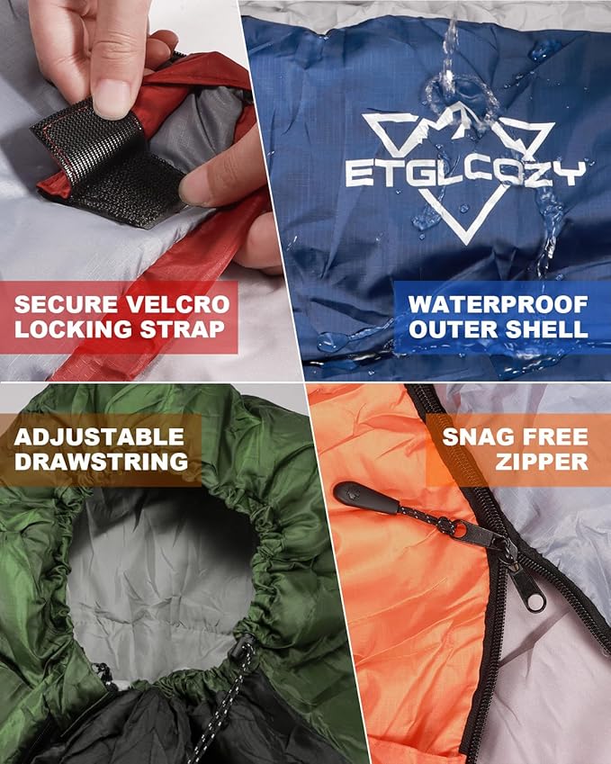 • Not Too Hot, Not Too Cold—Just Right! "50-77℉ comfort means no midnight sweat puddles or shivering like a chihuahua. Whether it’s a cool mountain night or a warm summer evening, this bag keeps you perfectly snug. Goldilocks approved!"