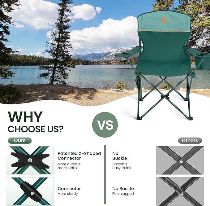 • Portable and Excellent: This portable camping chair is foldable. It is easy to set up and no tools required. This camping chairs for adults heavy duty with a carrying bag is easy to store and transport for travel or camping