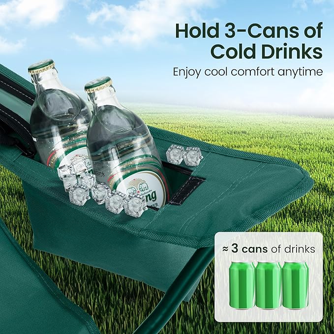 HIGH POINT SPORTS 2 Pack Portable Camping Chair for Adults, Folding Outdoor Camp Chair Lightweight Lawn Chairs Folding Collapsible Chair for Camping, Tailgates, Beach, Green, Support 225lbs