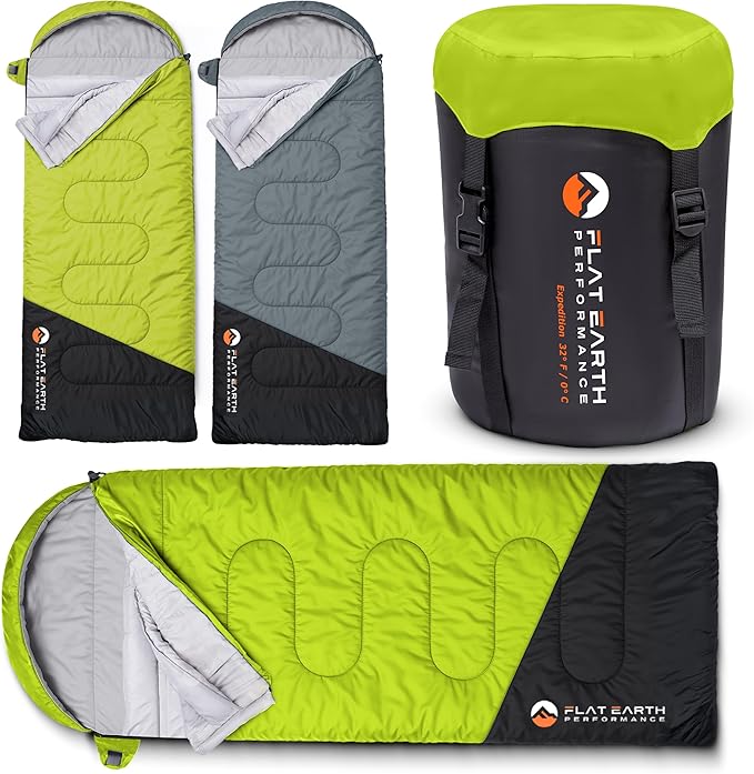 Expedition Sleeping Bag with Compression Sack – 32°F/0°C for Teens/Adults Up to 6'2", Lightweight, Water-Resistant, Backpacking Sleeping Bag for Camping, Hiking