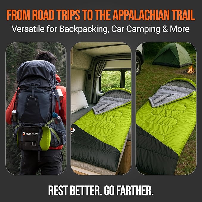 • Lightweight, Trail-Ready Design – This lightweight sleeping bag combines water resistant ripstop fabric, dual zippers, and a secure internal pocket in a durable, no-fuss build. It’s made for active campers who want reliable performance across multiple seasons.