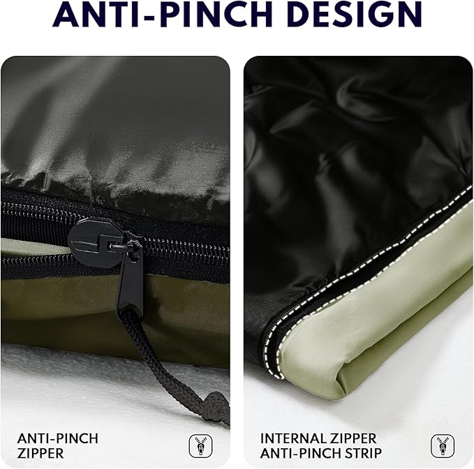 • 【LOTS OF SPACE TO WIGGLE AND PUT YOUR KNEES UP】You can unzip the feet separately to get some needed venting for additional comfort while still maintaining insulation. Two-way zipper with “zipper guard” to prevent stuck hooks effectively.
