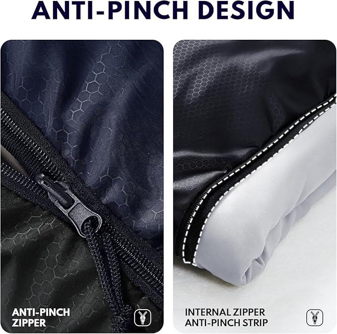 • 【LOTS OF SPACE TO WIGGLE AND PUT YOUR KNEES UP】You can unzip the feet separately to get some needed venting for additional comfort while still maintaining insulation. Two-way zipper with “zipper guard” to prevent stuck hooks effectively.