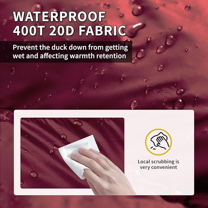 • Special Design: This adult sleeping bag is filled with 3.5 oz (approximately 0.4 in thick) of insulation per 10 square feet, from shoulders to feet. Even when the down loses some of its loft and warmth due to your body weight, it still locks in heat, preventing heat loss from your back and enhancing comfort for extended periods. This makes it ideal for outdoor activities and hiking, ensuring a sound sleep even in the wilderness and rainforest.