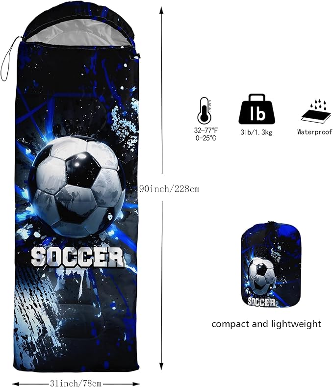 • 【FITS FOR 3 SEASONS】: SIZE - 31 by 90 inches (W x D). Our sleeping bag can be used in 3 seasons with a design temperature of 32℉-77℉(0℃-25℃). These bags also have a weather resistant waterproof design to keep you warm and prevent you from any dampness.