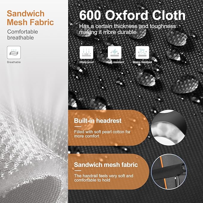 • Comfortable Design: We've added a comfy headrest that's thick and soft, so you can lean back and relax. The back and armrests are made from breathable, durable fabric with sandwich mesh padding, offering great comfort and rebound.