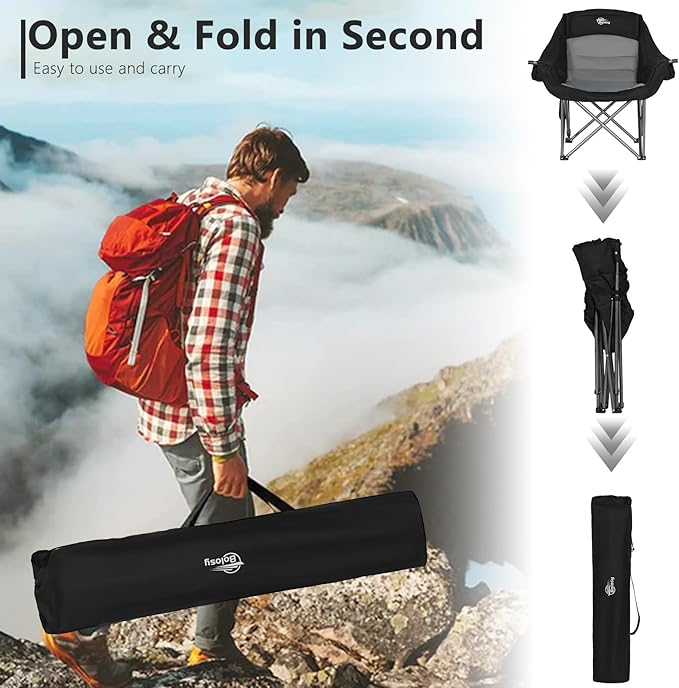 • Portable Folding Chair: This portable chairs for adults foldable could be opened and closed in second. The outdoor folding chair is lightweight at only 12.5 lbs with a carrying bag, making it easy to carry
