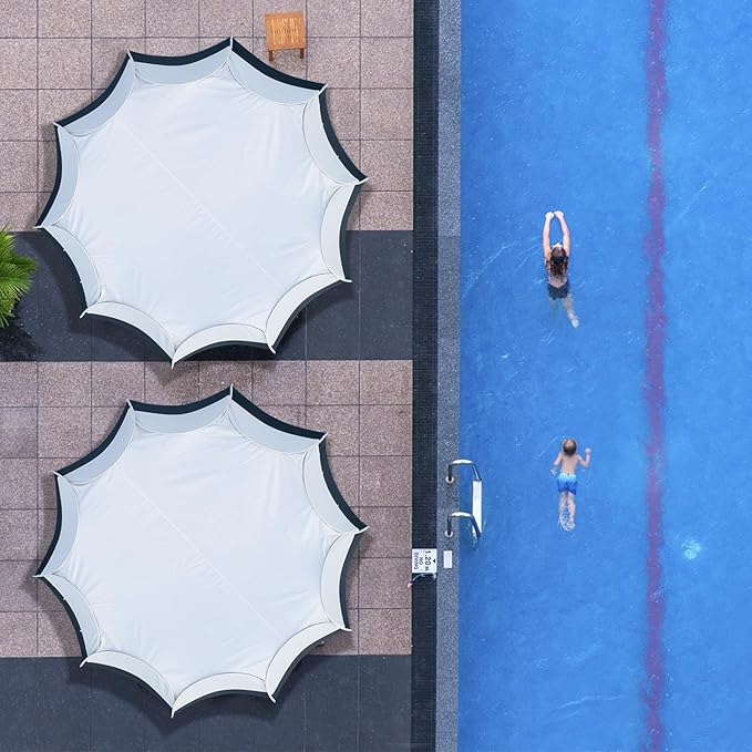 • ☀Patent pending design: fabric top provides all-day UPF 50+ UV protection against burning sun, not waterproof & not rainproof. Two large entrance doors with double side silicone zippers, easy to zip from inside and outside alike. 10 mesh netting screen walls protect your family and food. Extra hooks for your coat, bag or something else. 10 elongated sandbags, 20 guylines and 20 metal mounting stakes, provide extra stability in windy conditions.