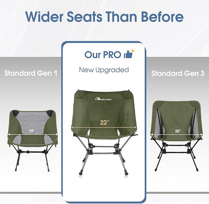 MOON LENCE Camping Chair Plus, Upgraded Comfort & Size, Still Compact and Lightweight, Folding Portable Chair for Backpacking & Hiking, 400Lbs Capacity, Gen 3 Plus (Green 2 Pack (Plus))