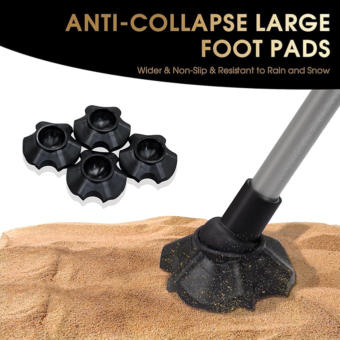 • Premium Durability & Stability: Crafted with aircraft-grade 7075 aluminum alloy, the frame achieves high strength-to-weight ratio. Reinforced with quad-leg base and triple-lock joints, it ensures 360° stability on uneven terrain. The 900D anti-tear Oxford fabric withstands 330lbs loads, paired with non-slip rubber feet for secure placement on wet grass or rocky surfaces