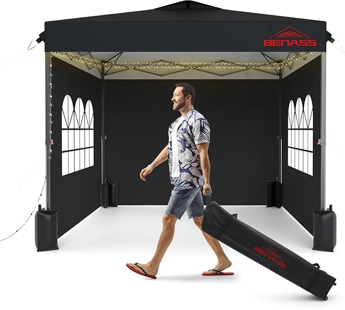 10x10 Pop Up Canopy with Sidewalls, Easy Up Canopy Tent, Heavy Duty Tents for Parties, One Person Set Up Event Tent, Black