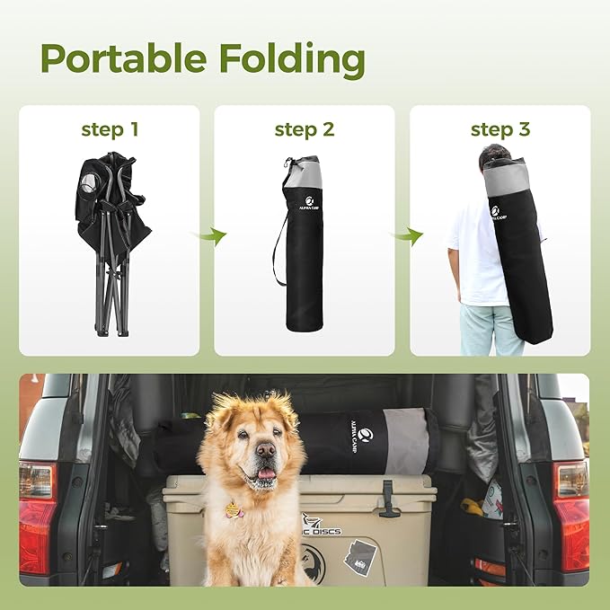 • 【Portable And Easy Storage】Folding camping chair is easy to set up and fold in seconds. It collapses down to just 9.05″ x 38.58″ and Weights only 13.2 lbs that can be stored almost anywhere