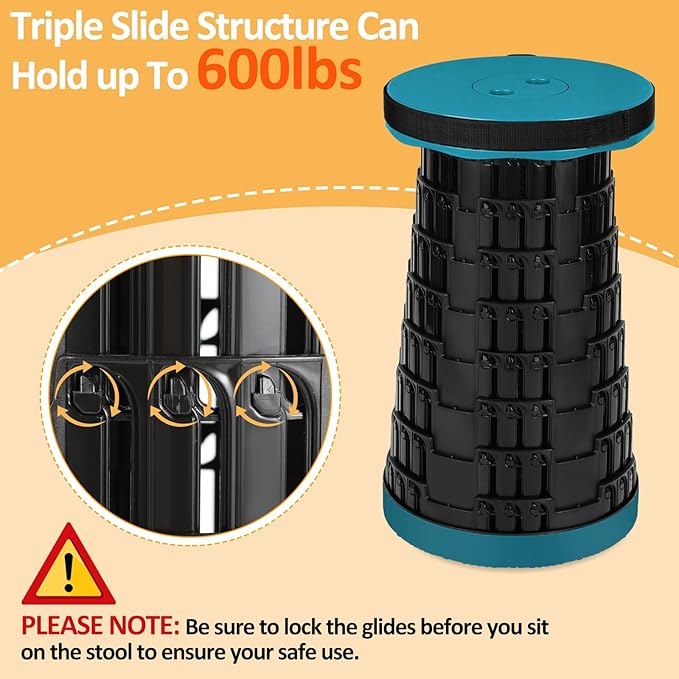 • SUPER UPGRADE: Upgraded triple slide structure on the side of the collapsible stool, the telescopic stool body has 144 load-bearing clasps locking layer by layer, the structure is more stable than the old version, and the load capacity is bigger, can reach 660 pounds. Let you use it with peace of mind.
