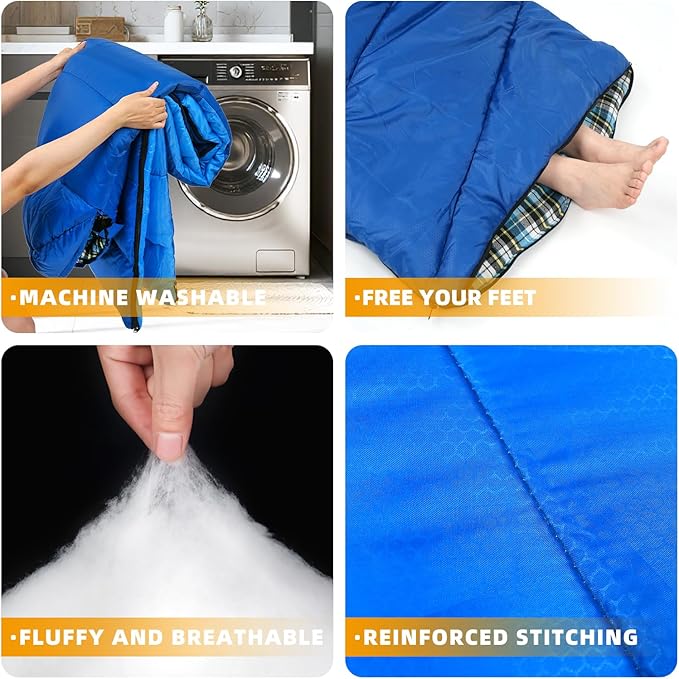 • PLENTY OF SPACE : Sleeping Bag Size 86.6 inch x 32.48 inch. Pack Weight is 4lbs, the compressed packing size is 11''-15.7'' and would take up less space. High-quality three zipper give you more comfortable camping experience.
