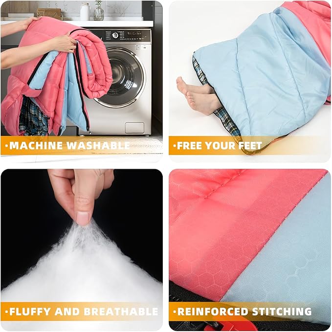 • PLENTY OF SPACE : Sleeping Bag Size 86.6 inch x 32.48 inch. Pack Weight is 4lbs, the compressed packing size is 11''-15.7'' and would take up less space. High-quality three zipper give you more comfortable camping experience.
