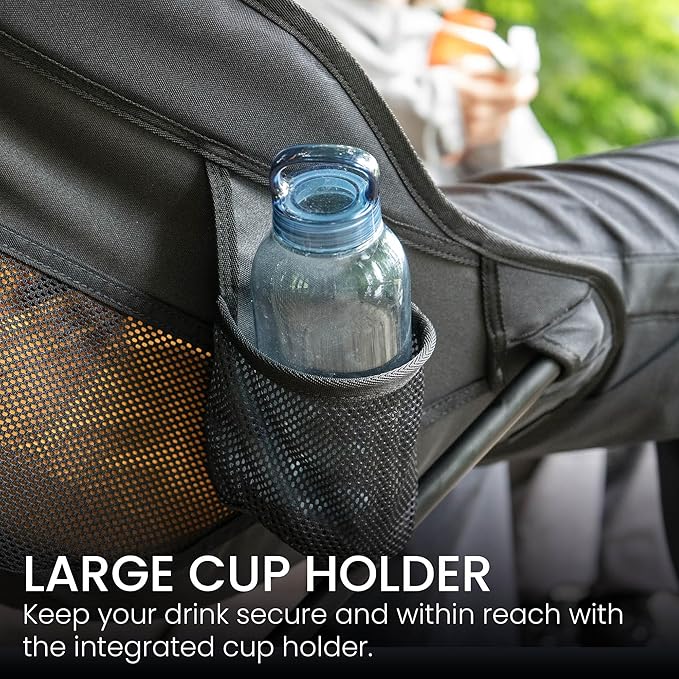 TSE HC100 Camping Chair, 3.36lbs Lightweight Folding Chair with Cup Holder, Portable and Easy to Carry for Camping, Beach, Hiking, Urbain, Festival or Garden (Black)