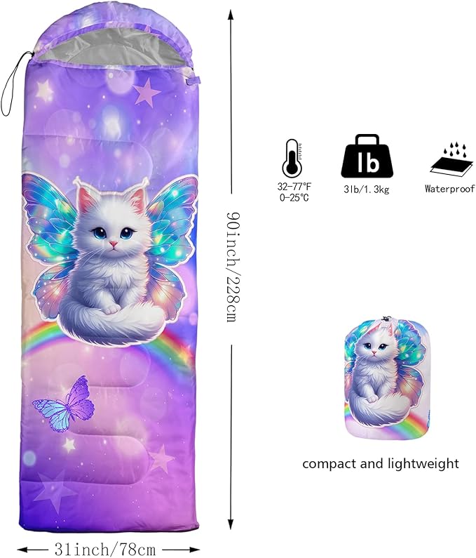 QOOMO Animals Camping Sleeping Bags,3 Season Warm & Cool Weather,Lightweight,Waterproof Sleeping Bags for Adults & Kids,Traveling,and Outdoors,Camping Gear Equipment