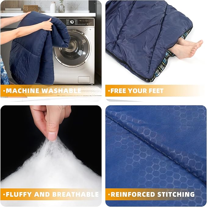 • PLENTY OF SPACE : Sleeping Bag Size 86.6 inch x 32.48 inch. Pack Weight is 4lbs, the compressed packing size is 11''-15.7'' and would take up less space. High-quality three zipper give you more comfortable camping experience.