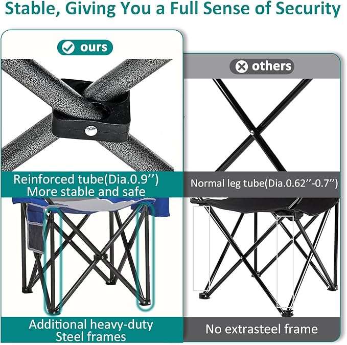 • Stable on Any Terrain: Large anti-sink feet provide excellent stability on grass, sand, or uneven ground, ensuring a safe and comfortable seating experience wherever you go.