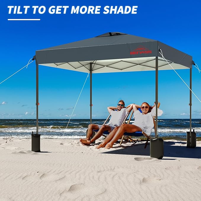 • Tilt for More Shade - You can adjust the different heights of the opposite legs so that the top of the canopy faces the sun, and you can get more shade. And then matched with 3 pieces of removable sidewalls, you can enjoy your time to the fullest
