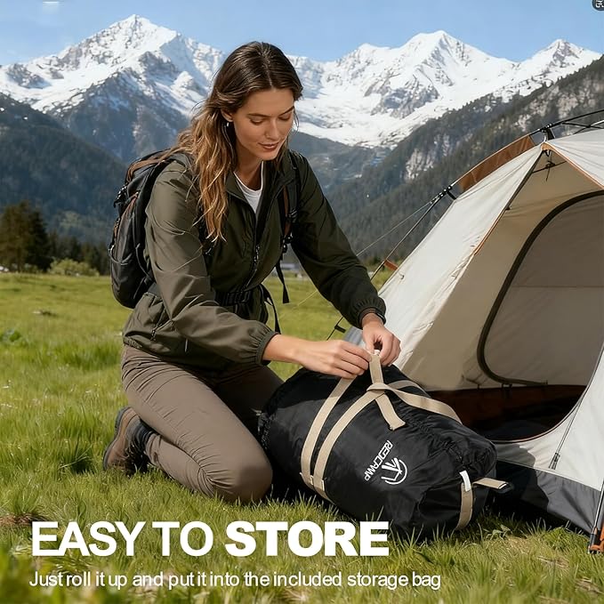 • Ultra-Portable with Compression Sack: Comes with a compression storage bag for easy packing. Simply fold the sleeping bag, roll it tightly, and stuff it into the sack – it shrinks to a compact size (only 12x14” when packed) and weighs just 5 lbs, making it effortless to carry in car trunks, or duffle bags without taking up too much space.​