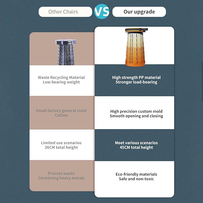 • Weather-Resistant Build: Made from water-resistant materials, this collapsible stool withstands light rain and moisture, making it a durable choice for all seasons and outdoor environments.