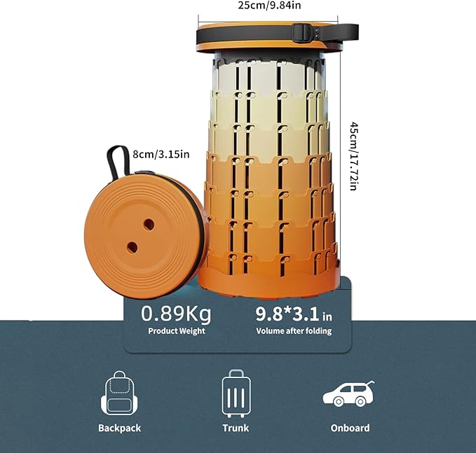 Ultra-Lightweight Collapsible Stool - Portable Folding Seat for Camping, Hiking, Travel & Outdoor Activities (Gradient Orange)